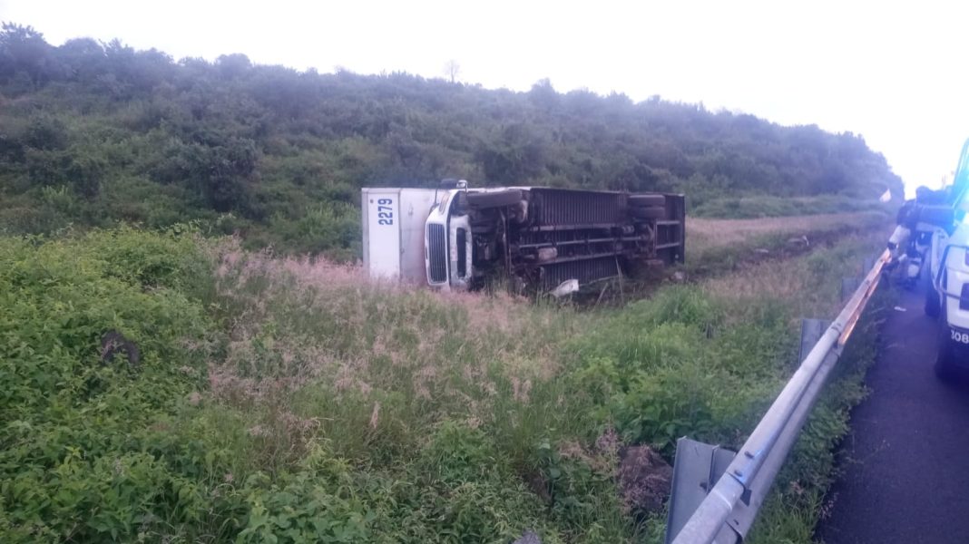 El percance ocurrió en el kilómetro 285, cuando un camión tipo Torton volcó, dejando al conductor con lesiones de gravedad. Paramédicos acudieron al sitio y, tras brindarle los primeros auxilios, lo trasladaron de emergencia al Hospital del IMSS en Zacapu.