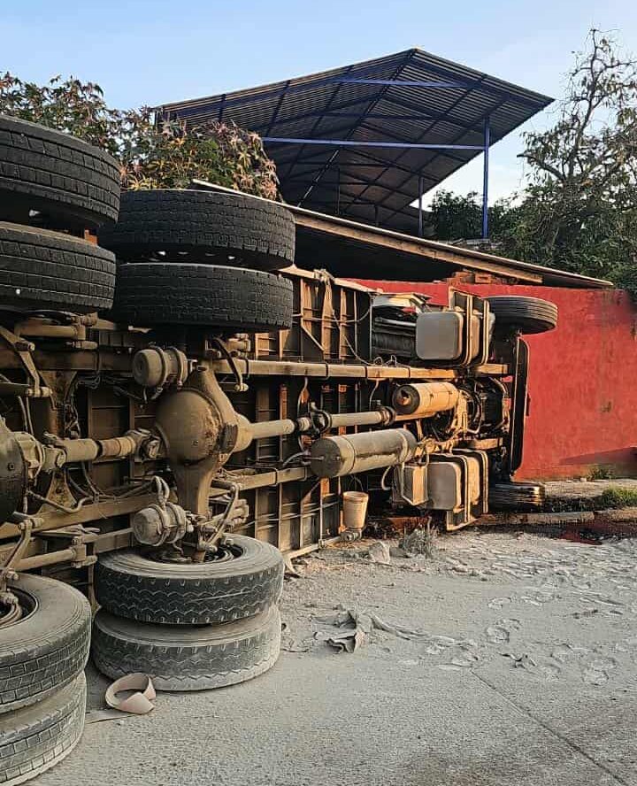 Salvador Escalante, Mich.- Los dos ocupantes de un tráiler que transportaba varios bultos de cemento fallecieron cuando dicha unidad volcó y se estrelló contra la barda de un domicilio en la comunidad de Ixtaro, municipio de Salvador Escalante, informaron autoridades policiales, las cuales agregaron que al referido vehículo presuntamente le fallaron los frenos.