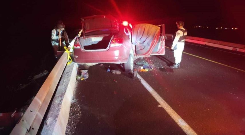 El auto siniestrado, un Chevrolet Aveo color guinda con placas del estado de Morelos, quedó sobre la cinta asfáltica en el carril con dirección a Lázaro Cárdenas.