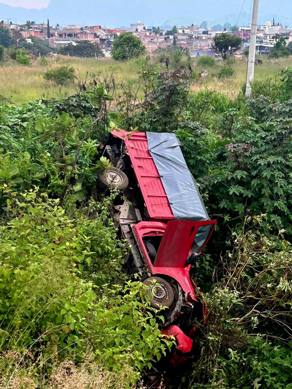 Hidalgo, Mich.- Una camioneta se salió de la carpeta asfáltica y terminó volcada en un terreno en desnivel cubierto de maleza, esto a la orilla del Libramiento Norte de Ciudad Hidalgo, indicaron fuentes policiales y de rescate, las cuales agregaron que por fortuna el conductor no sufrió lesiones de gravedad.