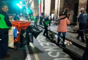 Y CLARO, no está por demás agradecer también a los trabajadores de limpia del Ayuntamiento de Morelia que lloviera, truene o relampaguee estuvieron al pie del cañón para recolectar alrededor de ¡31 toneladas de basura! En total que dejamos el razerío en estos Festejos Patrios en la capital del estado. Y es que luego del concierto del 15 de septiembre, los trabajadores municipales se desplegaron para recolectar ni más ni menos que un total de 24 toneladas de basura, detallando que durante la presentación del Julión se colocaron 10 vehículos recolectores en distintos puntos del Primer Cuadro y otros 15 para la jornada de recolección nocturna, “con el objetivo de dejar reluciente la avenida Madero y calles aledañas para el Desfile Cívico Conmemorativo de la Independencia de México”. Óoooorale… Y según los reportes, este sábado 16 de septiembre, tras el Desfile, se recolectaron 7 toneladas de deshechos sobre la avenida Madero, empezando por el Jardín Morelos hasta el monumento a Lázaro Cárdenas……