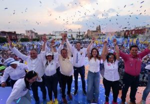 PAREDES RANGEL, en su mensaje, además de cuestionar que “¿Qué le ha dicho Morena a la Nación?, ¿Que quiere cambiar el modelo político del país?, ¿hacia dónde?”, entre otros posicionamientos, dijo que las y los candidatos de Fuerza y Corazón X México “que aspiran a representarnos en el Congreso representan la genuina esperanza de los michoacanos”, haciendo remembranza histórica además del papel que han jugado los michoacanos y michoacanas en los momentos cruciales del país… “Y si ha sido el pueblo de Michoacán el generador de tantas hazañas históricas, ¿por qué nos encontramos en estos momento de crisis política?. ¿Por qué en este momento tenemos esta circunstancia de atraso de inseguridad, de falta de oportunidades?, ¿por qué el talento michoacano tiene que irse a Estados Unidos para demostrar que son ustedes los más brillantes, los más ingeniosos, los más imaginativos ?”, preguntó y respondió Beatriz: “porque lo que le ha fallado a Michoacán es la política. Porque lo que le ha fallado a Michoacán en los últimos años, son los políticos. Porque ustedes tienen que resolver este 2 de junio este enorme dilema que tiene este estado maravilloso y recuperar la paz y la tranquilidad para Michoacán”, señaló y reforzó la senadora priísta: “necesitan salir en medio del calor, en medio de la problemática, en medio de la inseguridad a promover a todos los ciudadanos a que salgan a votar, a que llevemos a nuestros legisladores, a nuestros senadores, a nuestros diputados a los diputados locales y a Xóchitl Gálvez por la coalición Fuerza y Corazón a ganar y a ganar los ayuntamientos. En Michoacán por su fuerza, por su talento y por el orgullo de la historia michoacana ¡vamos a ganaaar!”, terminó arengando Beatriz Paredes…