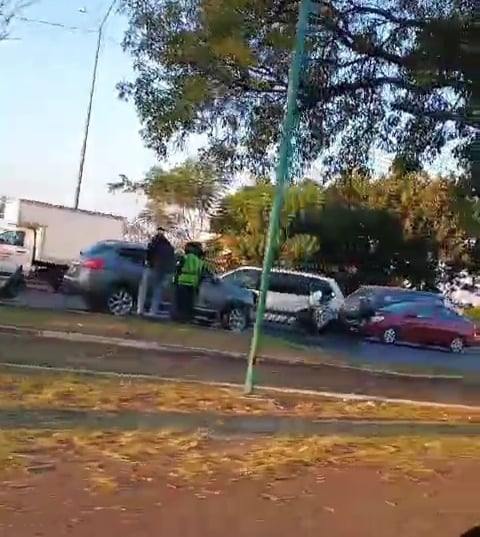 La mañana de este martes se registró un choque entre al menos tres vehículos sobre el Periférico Paseo de la República, cerca del Mercado de Abastos, el cual ocasionó caos vial.
