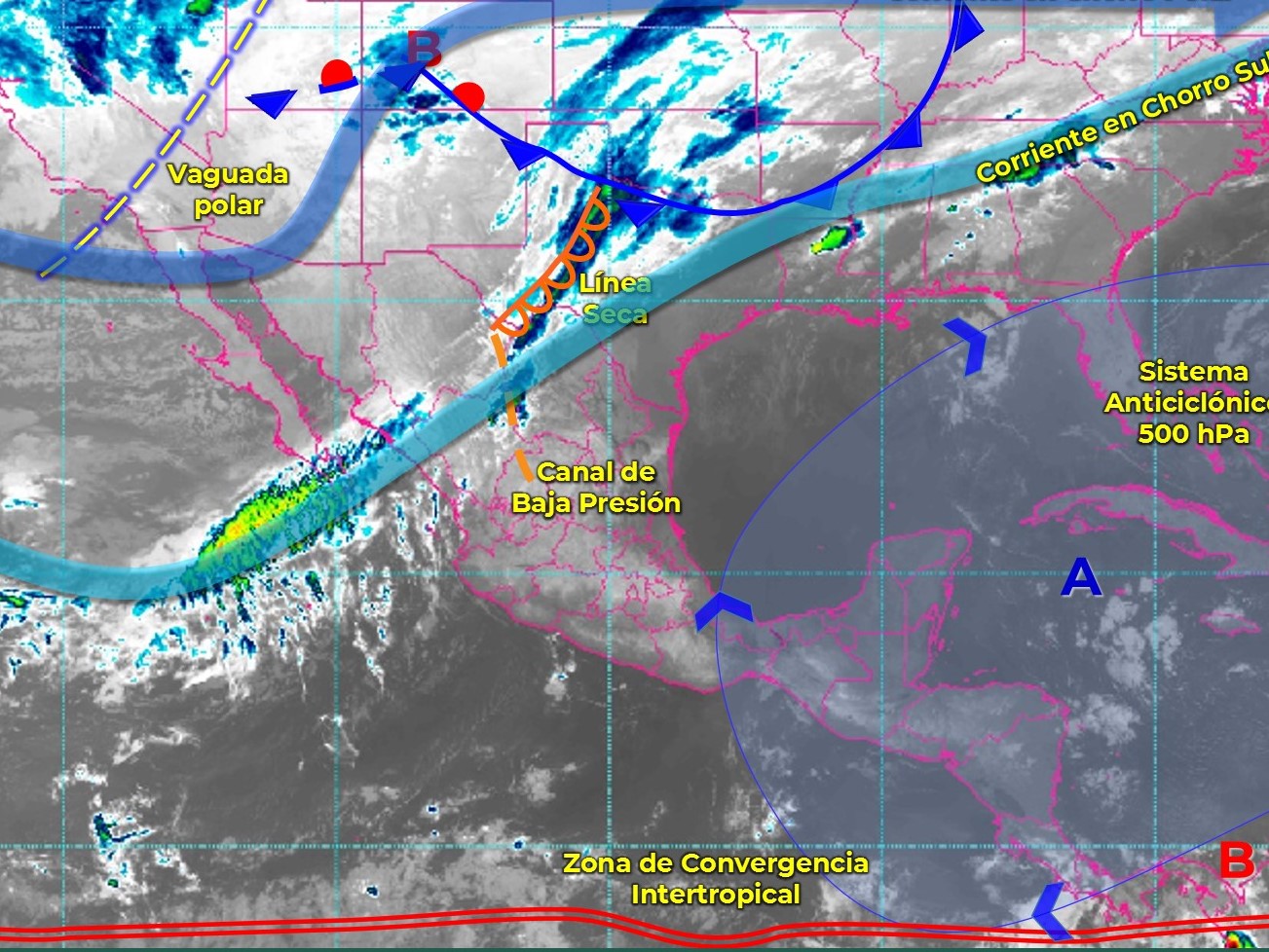 Las condiciones mencionadas serán ocasionadas, en el noroeste de México, por la interacción de una vaguada polar y el ingreso de humedad proveniente de la corriente en chorro subtropical, así como por el flujo de humedad proveniente del Océano Pacífico y el Mar Caribe en el resto del país.