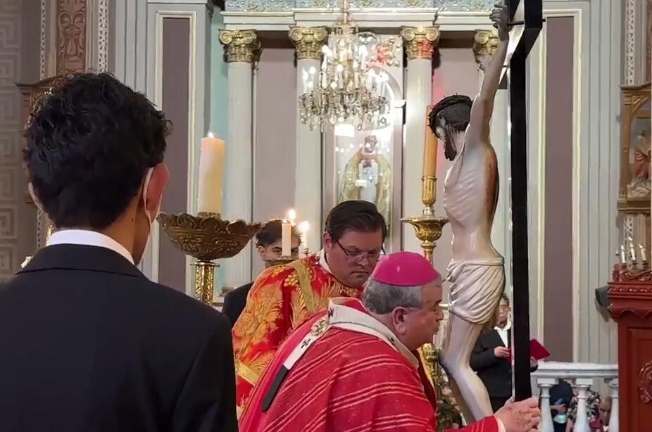 «Adoremos la Santa Cruz», pronunció, todos los presentes se prepararon para mantener el silencio por la muerte de Jesús, y para la solemne vigía Pascual que nos ayude a encontrarnos con Cristo resucitado.