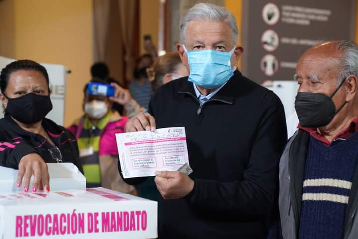 El presidente Andrés Manuel López Obrador emitió su voto en la consulta de Revocación de Mandato para que permanezca en el cargo los próximo tres años.